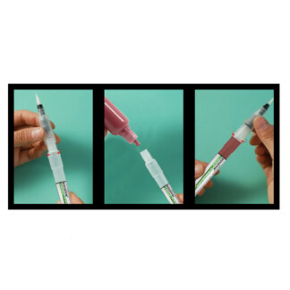 - Gently squeeze the barrel to prime the brush tip with paint and begin creating!